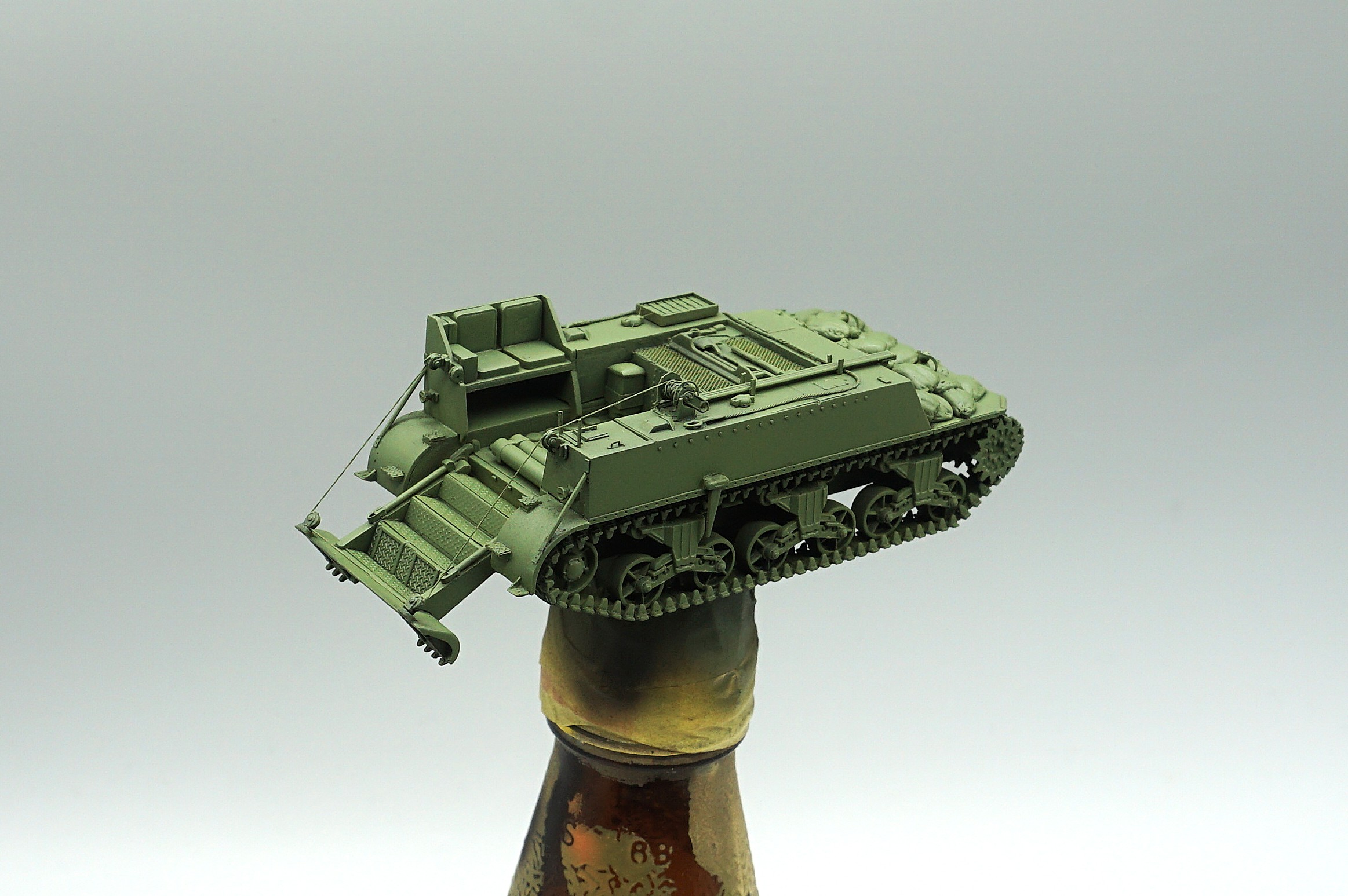 인위적인 얼룩을 만들기로 한다. 치핑 플루이드를 뿌리고 아크릴 녹색계열에 올리브느낌을 섞어 기존 차체보다 밝게 뿌려준다.