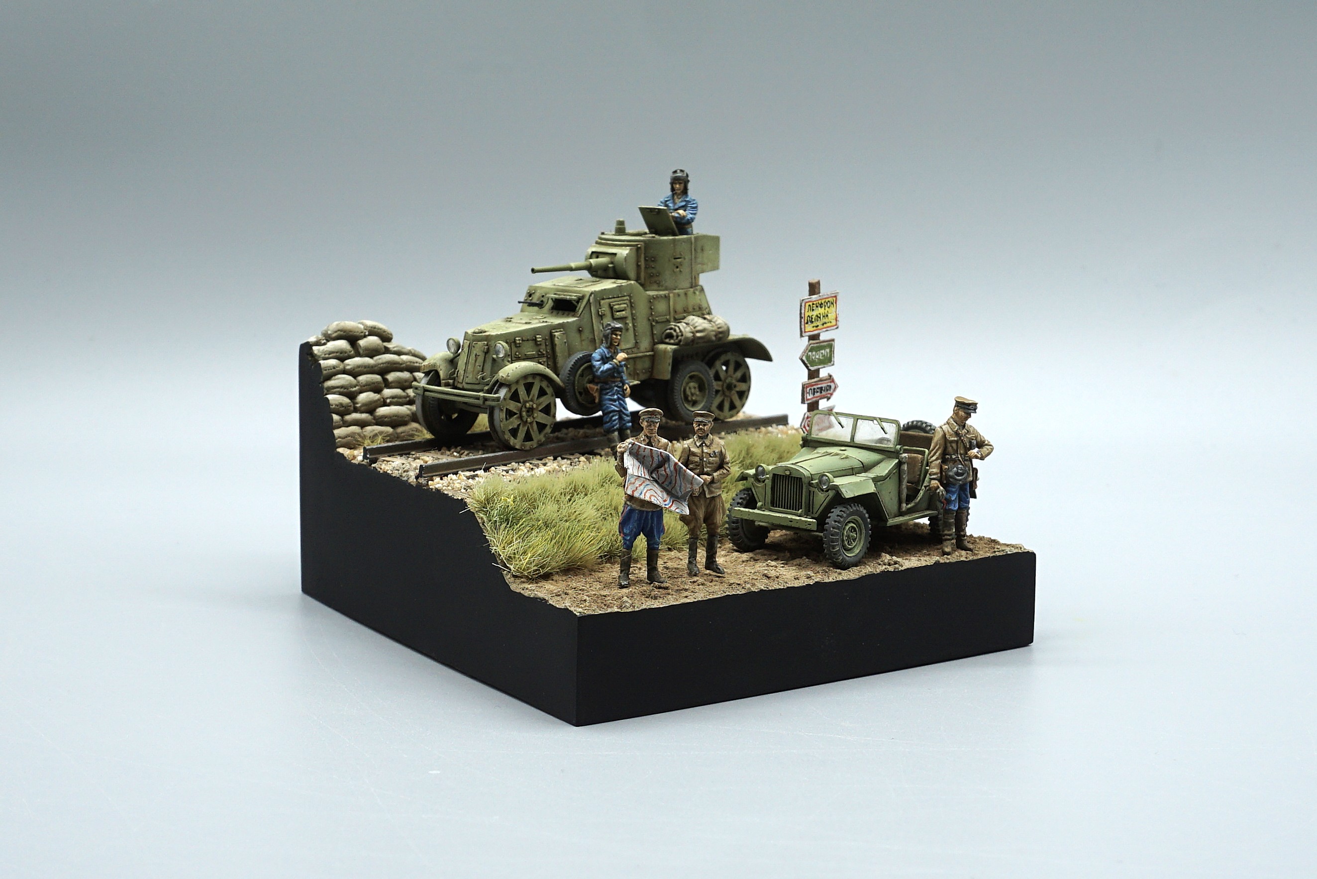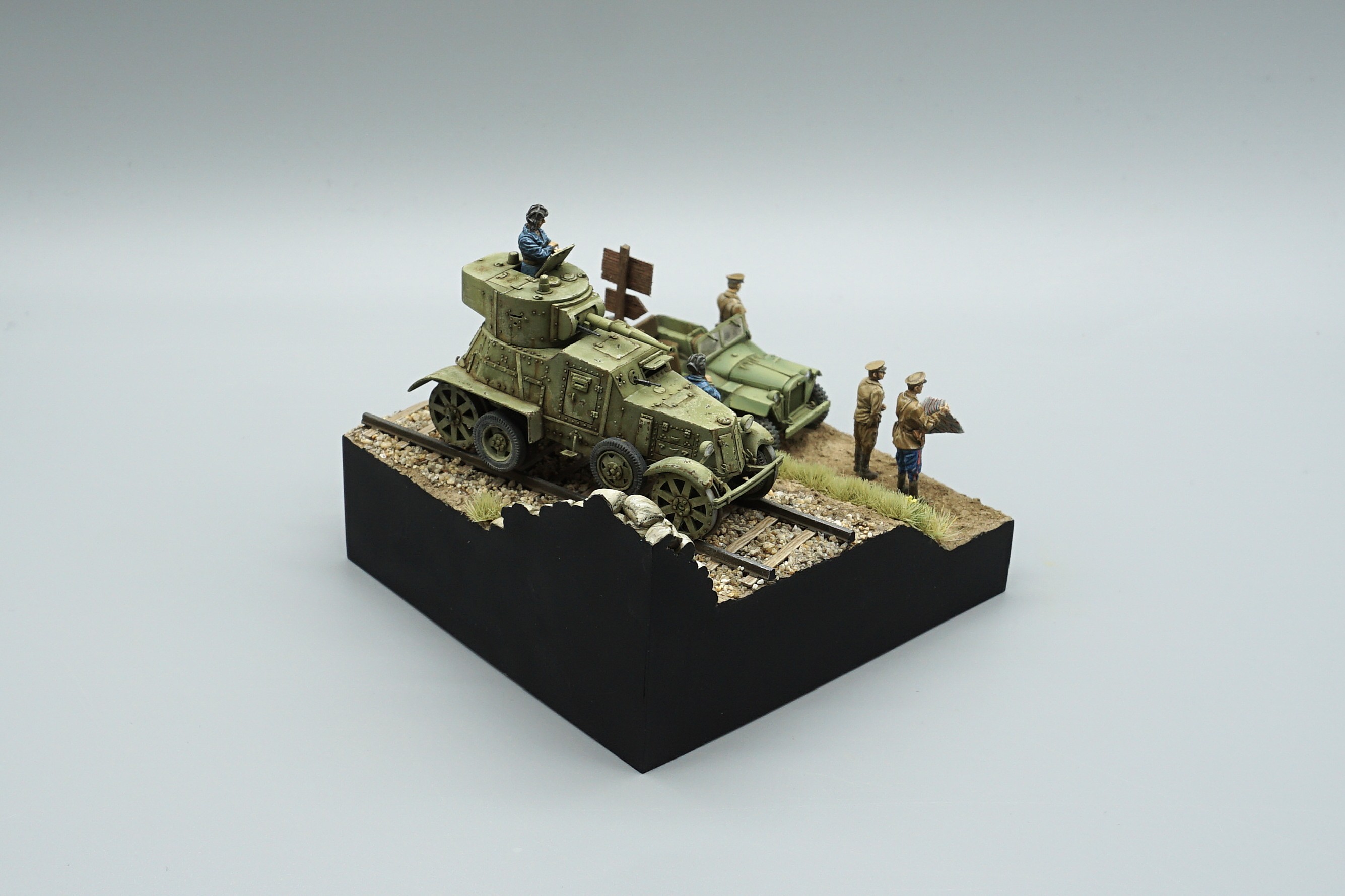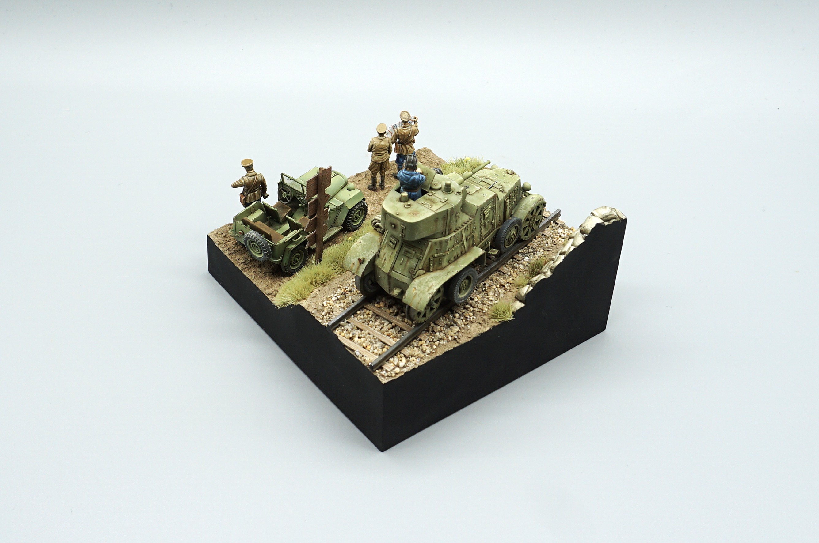 2026년 첫 완성작이다. 생각했던 완성도가 아니라서 조금 실망이지만 그래도 하나 털어내서 뿌듯하다. 이 못생긴 BA-3장갑차가 엄지손가락보다 살짝 큰 크기라서 하나만 배치하면 너무 볼것 없어서 BA-64소련군 지프와 인형도 더 추가해 완성했다. 임팩트 없는 작품이지만 저질의 UM사 장갑차를 완성했다는 것에 의미를 둔다.