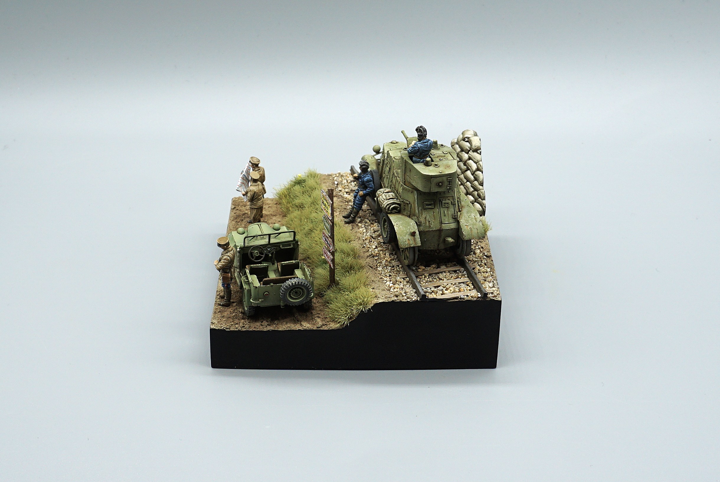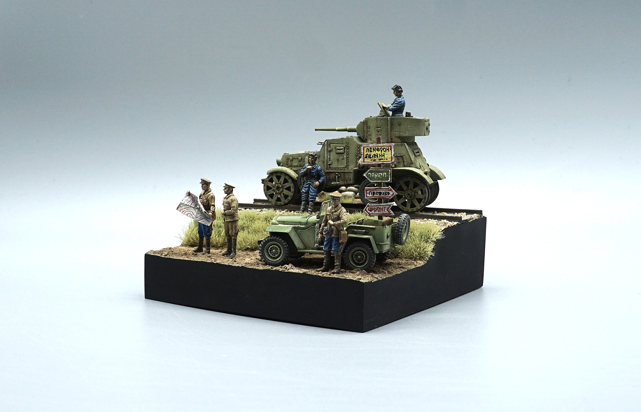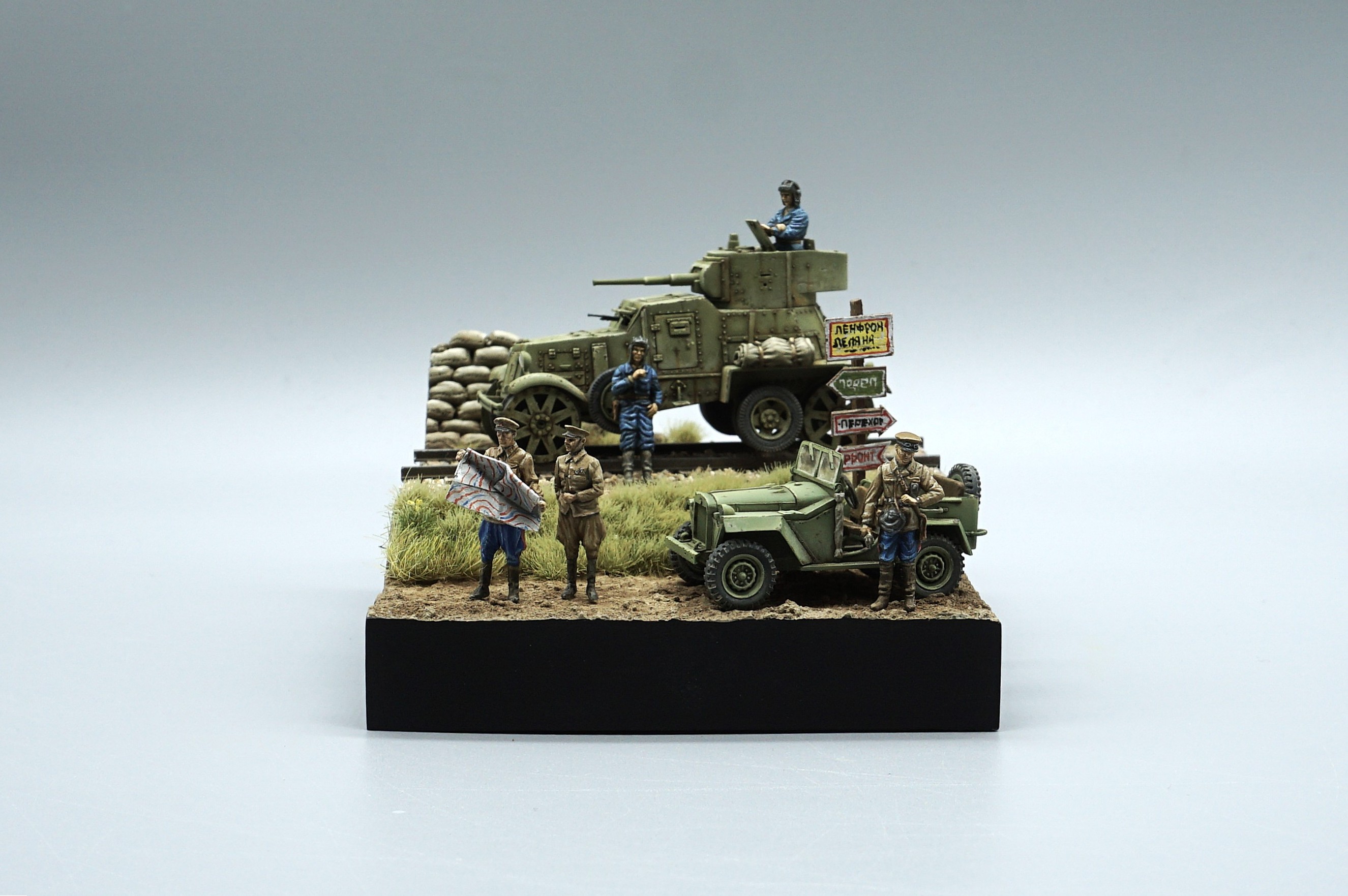 2026년 첫 완성작이다. 생각했던 완성도가 아니라서 조금 실망이지만 그래도 하나 털어내서 뿌듯하다. 이 못생긴 BA-3장갑차가 엄지손가락보다 살짝 큰 크기라서 하나만 배치하면 너무 볼것 없어서 BA-64소련군 지프와 인형도 더 추가해 완성했다. 임팩트 없는 작품이지만 저질의 UM사 장갑차를 완성했다는 것에 의미를 둔다.